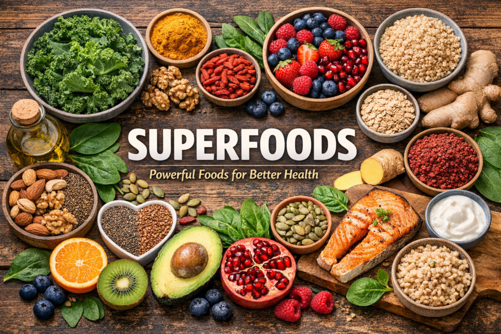 Superfoods are nutrient-rich foods that provide a high amount of vitamins, minerals, antioxidants, and other health-boosting compounds. These foods are known for their ability to improve overall health, boost immunity, and reduce the risk of various diseases. Including superfoods in your daily diet doesn’t require drastic changes—simple additions like fruits, seeds, and leafy greens can make a big difference. They help your body function better and support long-term wellness.